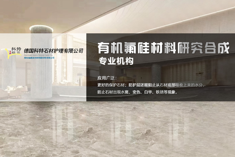 福建泉州科特新材料有限公司(Germany Kurt Ke Te)是德國從事有機氟硅材料研究合成的專業機構。對于一些吸水性基材(石材、磚瓦、混凝土),它讓氟硅元素的有效成分滲透到基材的空隙(毛細管)中,在基材內部形成一個防護層,表面達到防油效果,同時保持石材的透氣性,從而更好的保護石材。此外,防護層還能阻止從石材底部吸收上來的水分,防止石材出現水斑、變色、白華、鐵銹等現象。